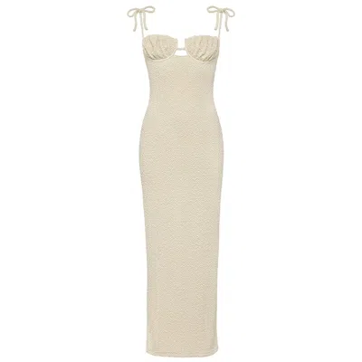 Women's Neutrals Oat Texture Petal Long Slip Dress In White