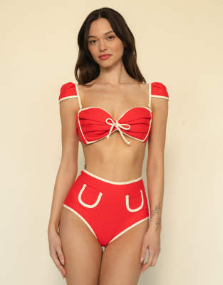 Cherry Cream Binded Tori Ties Bandeau Bikini Top-red