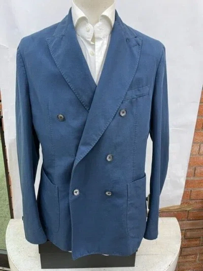 Pre-owned € 740 Men Jacket Bouble Breasted Made In Italy Blu Cotton Linen In Blue