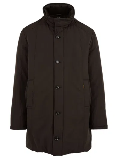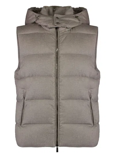 Detachable-hood Quilted Zip-up Gilet In Brown