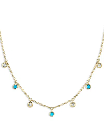 14k Yellow Gold Turquoise & Diamond Dangle Collar Necklace, 18 - Exclusive In Turquoise/gold