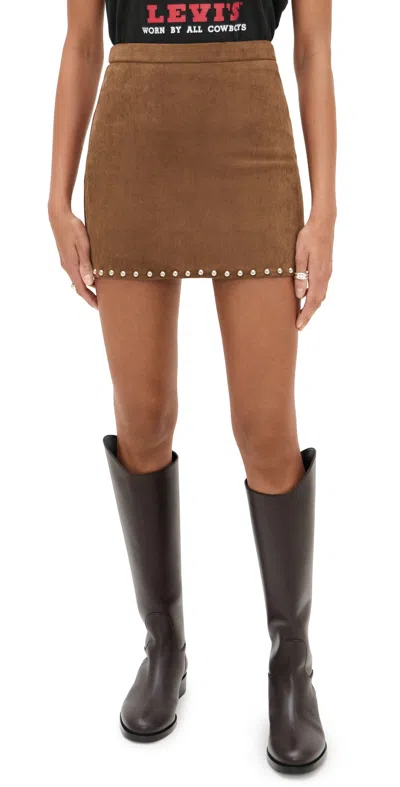 Stud Detail Zipper Front Faux Suede Jacket In Camel In Brown