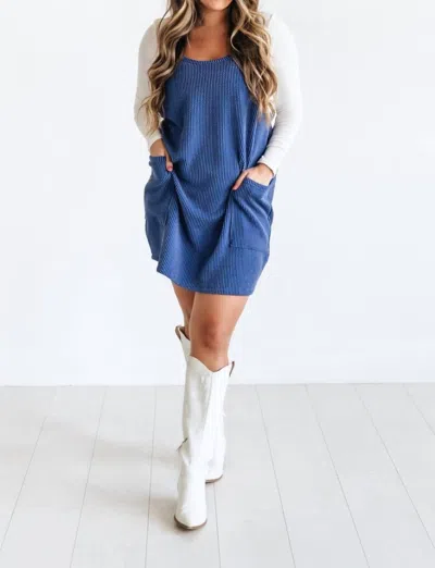 Wave Ribbed Tank Dress In Navy In Blue