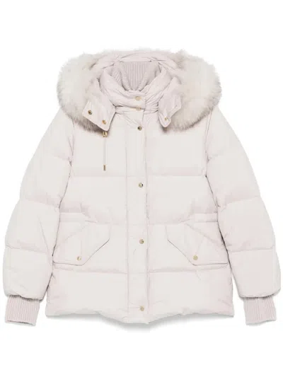 Fur-collar Quilted Coat In Neutral