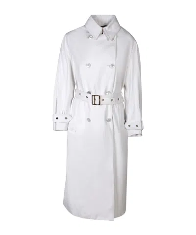Belted Double-breasted Trench Coat In Neutral