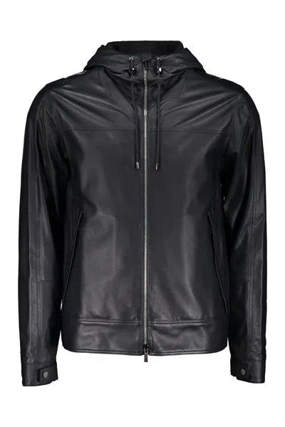 Anfossi Zip-up Leather Jacket In Black