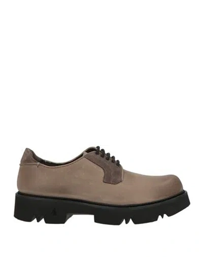 Man Lace-up Shoes Grey Size 9 Leather In Brown