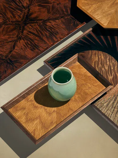 Poke Wood Rectangular Tray Abask Luxury Gift In Brown