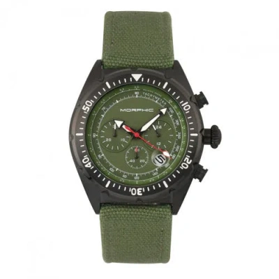 M53 Series, Black Case, Chronograph Fiber Weaved Olive Leather Band Watch W/date, 45mm In Black/olive