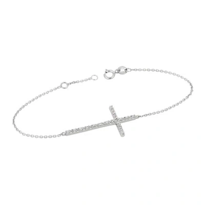 Pre-owned 0.20 Carat Natural Diamond Cross Bracelet Si 14k White Gold 7''