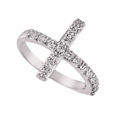Pre-owned 0.75 Carat Natural Diamond Cross Ring Si 14k White Gold