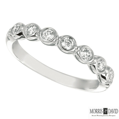 Pre-owned 0.35 Carat 7 Stone Bezel Natural Diamond Ring Band Si 14k White Gold