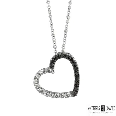 Pre-owned 0.25 Carat Black And White Diamond Heart Necklace 14k White Gold