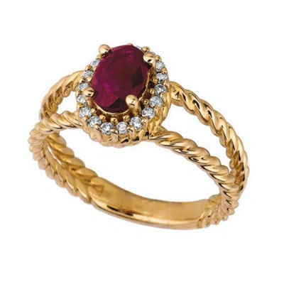 Pre-owned 1.05 Carat Natural Ruby & Diamond Oval Ring 14k Yellow Gold In Red