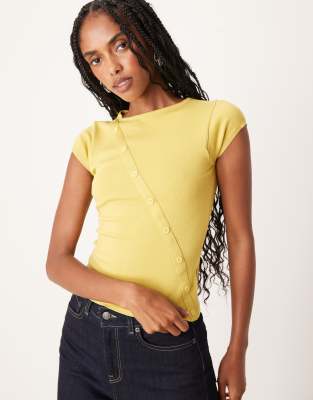 Elyra Button Detail Short Sleeve Top In Yellow
