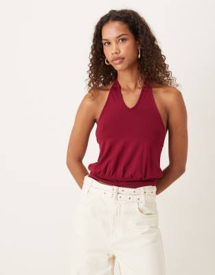 Dyilla Halterneck Slinky Top In Burgundy