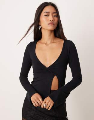 Aye Ruched Plunge Long Sleeve Top In Purple