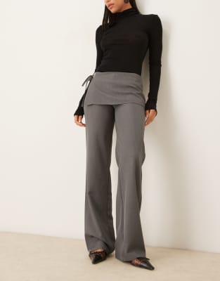 Rivela Tie Waist Wide Leg Tailored Pants In Gray