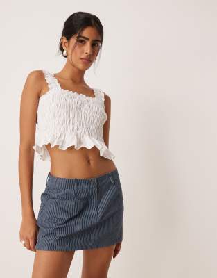 Striped A-line Mini Skirt In White