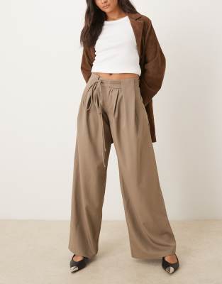 Rivela Tie Waist Wide Leg Tailored Pants In Nude