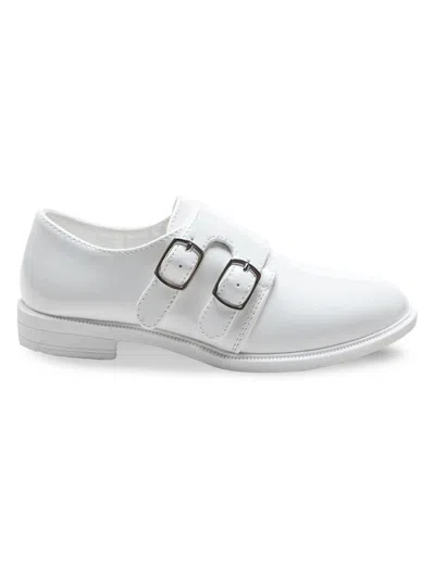 Kids' Patent Double Monk Strap Dress Shoes In White