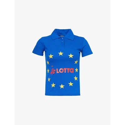 Womens Blue Red Mowaland Euro Brand-print Slim-fit Cotton Polo Shirt