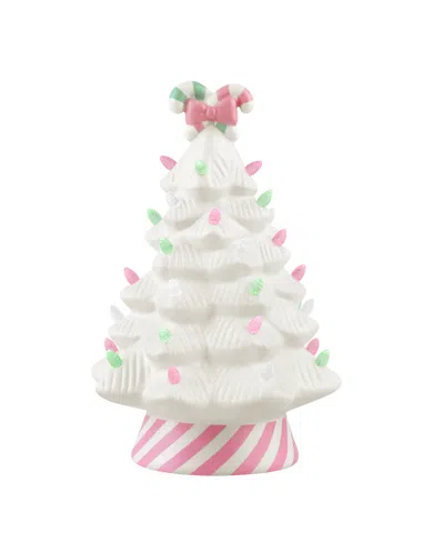 12" Nostalgic Ceramic Lit Candy Cane Tree, Pink In White