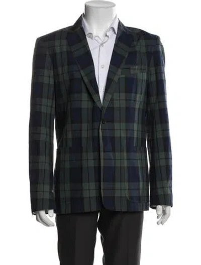 Pre-owned Plaid Print Blazer In Green