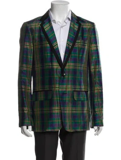 Pre-owned Silk Plaid Print Blazer In Green