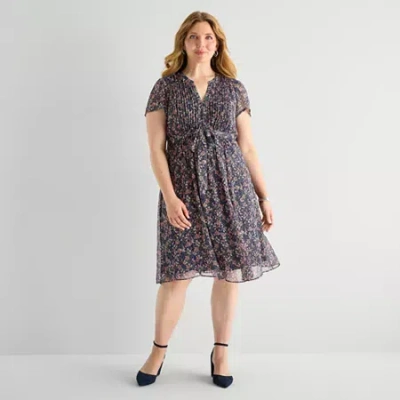 Womens Plus Short Sleeve Floral Shirt Dress In Neutral