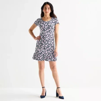 Womens Short Sleeve Floral Maxi Dress In Blue