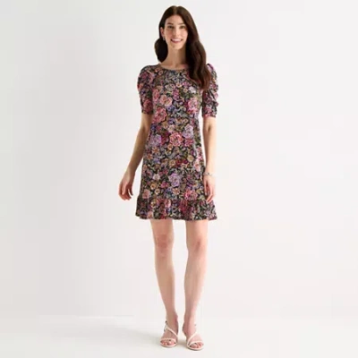 Women's Chiffon-sleeve Jersey Shift Dress In Black