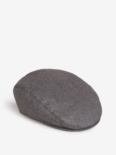 James Herringbone-pattern Beret In Gray
