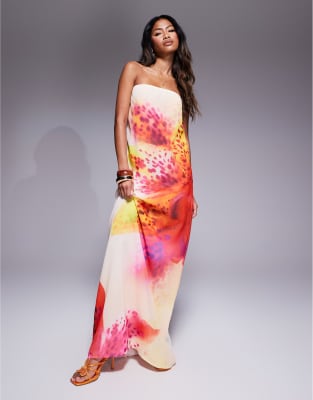 Exclusive Bandeau Fishtail Maxi Dress In Multi