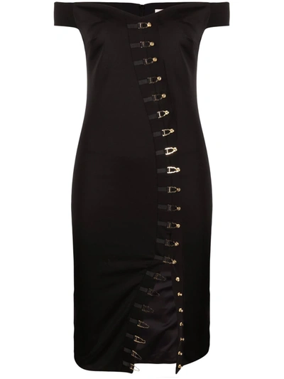 Off-shoulder Hook Fastening Midi Dress In Schwarz