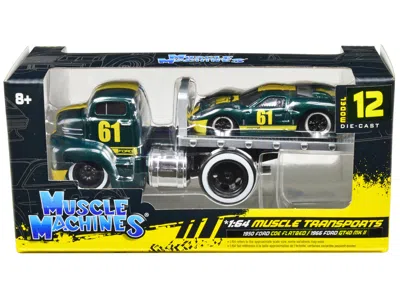 1950 Ford Coe Flatbed Truck #61 And 1966 Ford Gt40 Mk Ii #61 Green Metallic With Yellow Stripes "mus