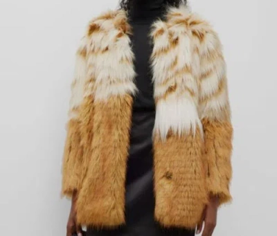 Pre-owned $1250 Alabama Italy Women's Brown White Faux-fur Adam Coat Jacket Size 46