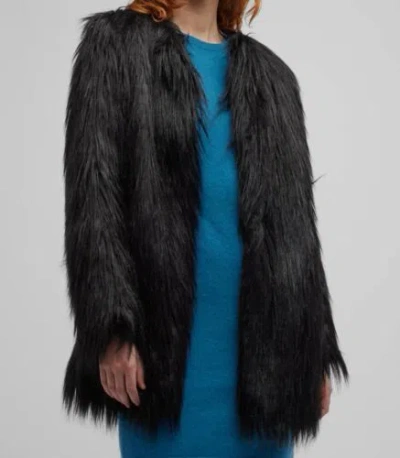 Pre-owned $1300 Alabama Italy Women's Black Faux-fur Nina Coat Jacket Size 40