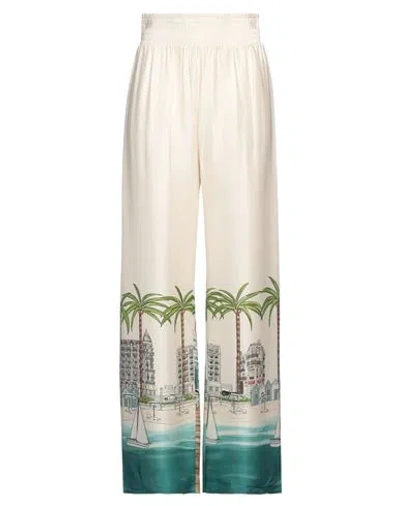 Woman Pants Cream Size 6 Viscose In Multi