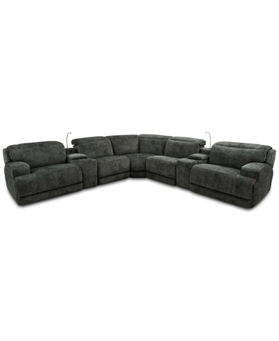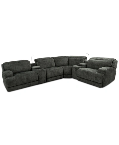 Sebaston 6-pc. Fabric Sectional With 2 Power Motion Recliners And 2 Usb Consoles, Created For Macy's In Highlander Midnight