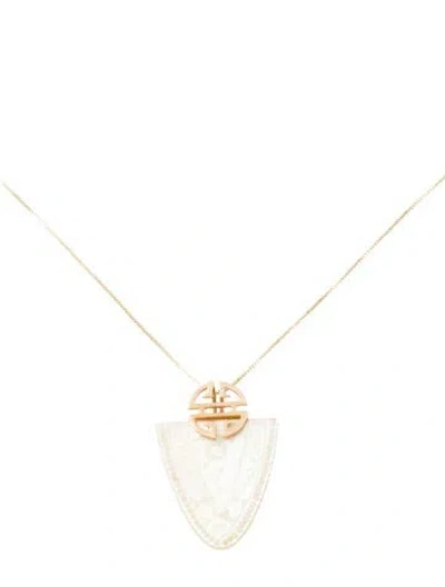 Pre-owned 14k Mother-of-pearl 'long Life Shield' Pendant Necklace, 17" In Multi