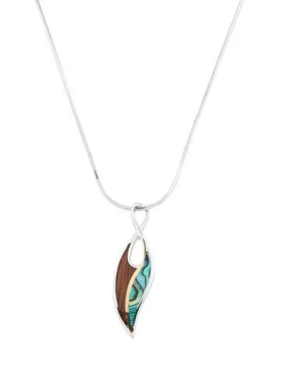 Pre-owned Abalone & Wood Maile Leaf Pendant Neckalce, 18" In Multi