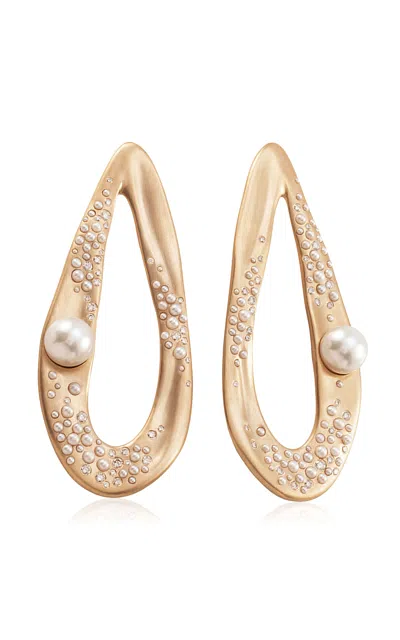 Drop Shine Large 18k Yellow Diamond Pearl Earrings In Gold