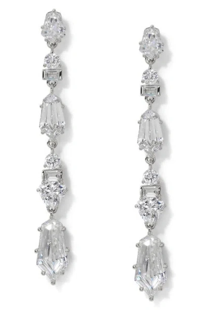 Luxor Kite Cubic Zirconia Linear Drop Earrings In Rhodium
