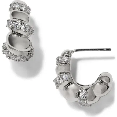 Phenom Cubic Zirconia Huggie Hoop Earrings In Metallic