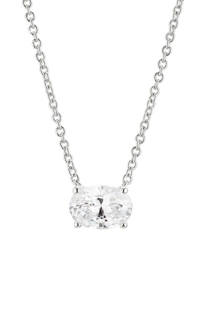 Modern Love Oval Cubic Zirconia Pendant Necklace, 16-18 In Rhodium