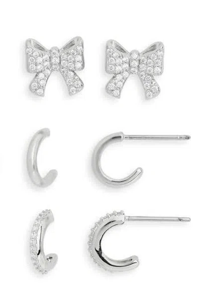 Set Of 3 Cubic Zirconia Bow Stud & Huggie Hoop Earrings