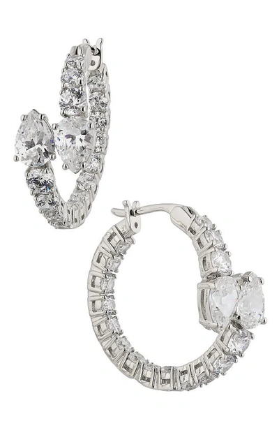 Emerald Isle Cubic Zirconia Bypass Hoop Earrings In Rhodium