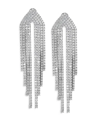 Perfect Tennis Cubic Zirconia Graduated Linear Drop Earrings In Rhodium Plated In Silver