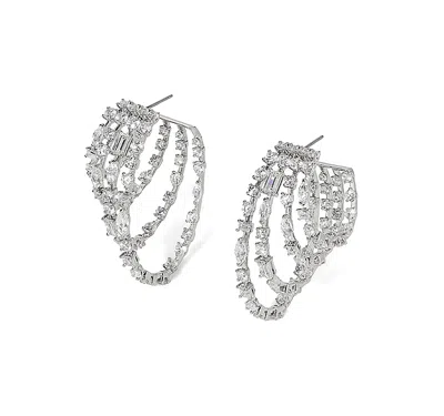 Cabaret Cubic Zirconia Multi Row Hoop Earrings In Rhodium Plated In Silver